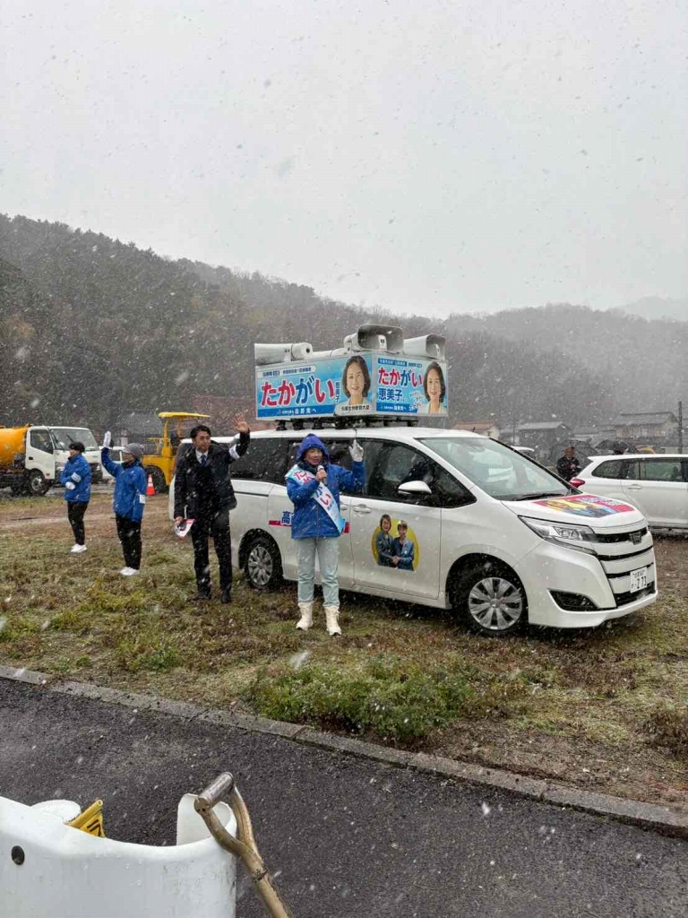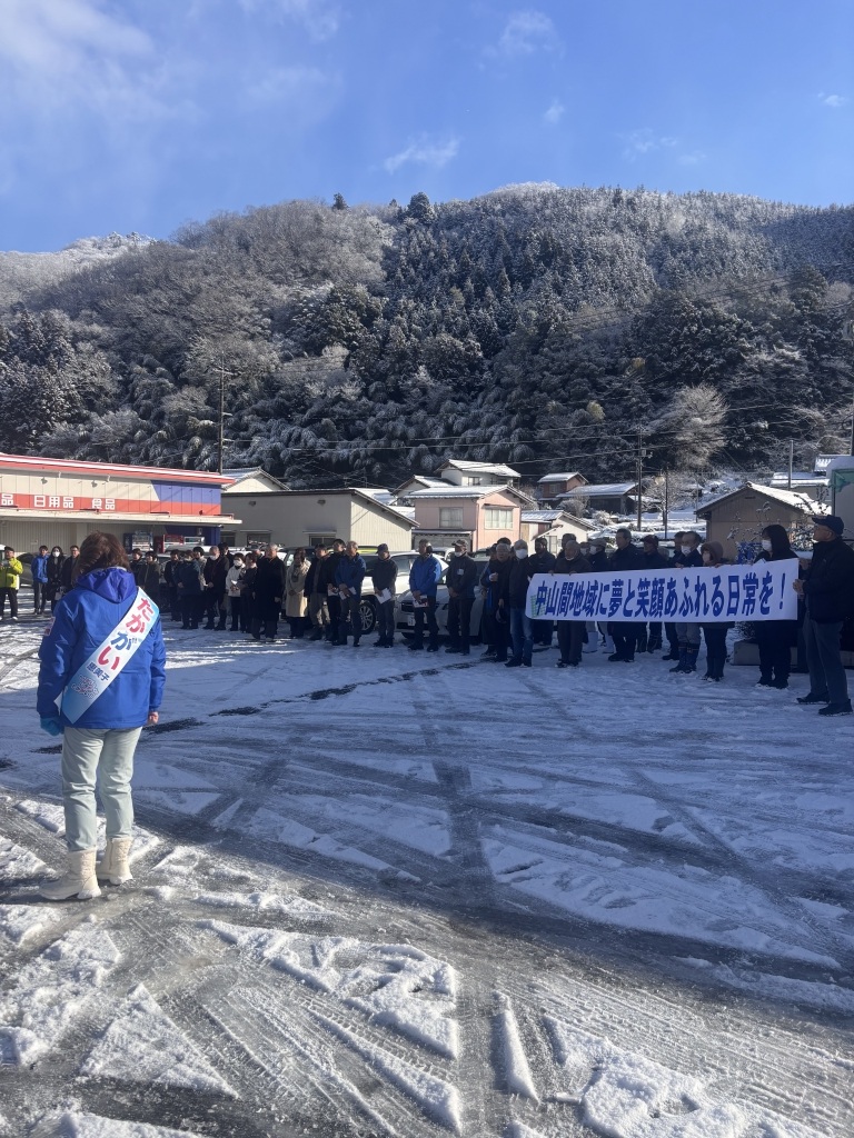 吉田地区、三刀屋にて多くの皆さまと握手を交わし、高市総理の進める「責任ある積極財政」を力強く訴えました。