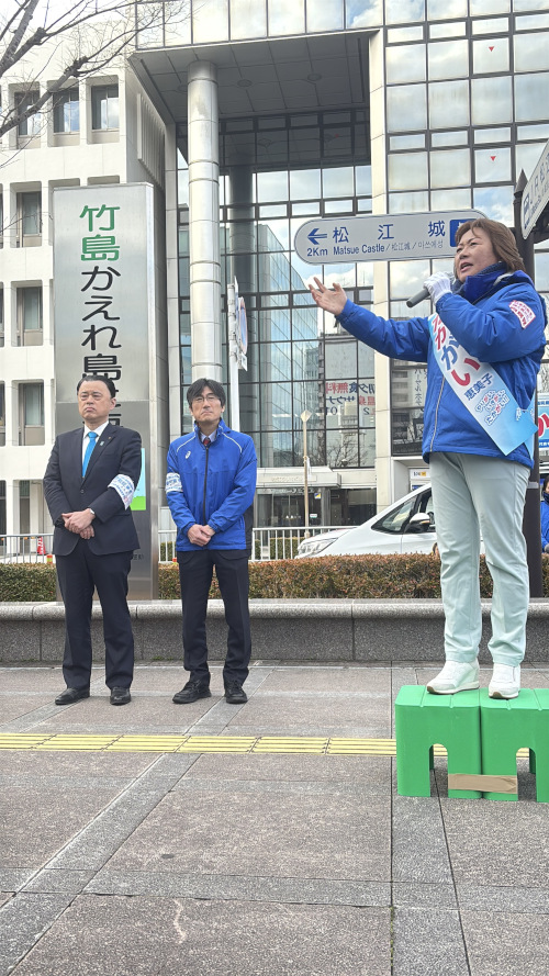 高市総理とともに「責任ある積極財政」を掲げ、この島根1区の議席奪還に向けて、強い決意を訴えさせていただきました。