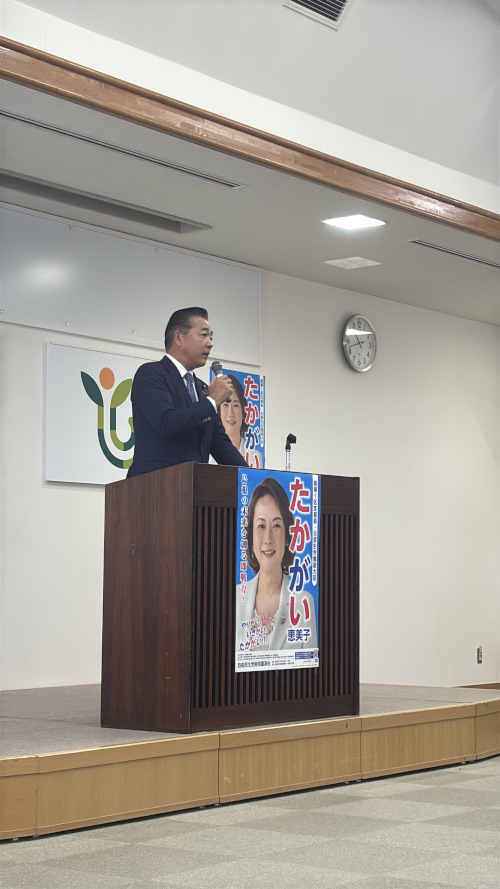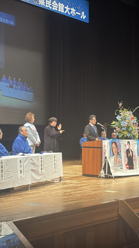 応援に、見坂茂範参議院議員をはじめ、青木一彦先生、出川桃子先生、丸山達也知事からも、心強い激励をいただきました。