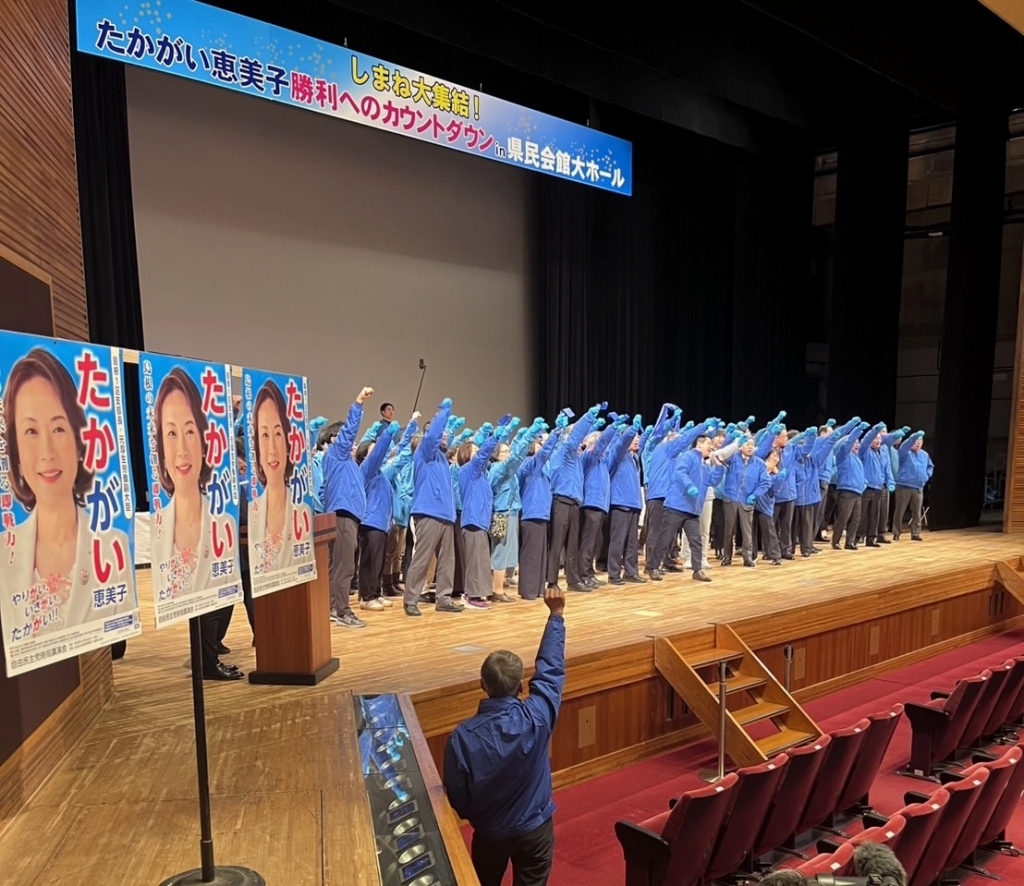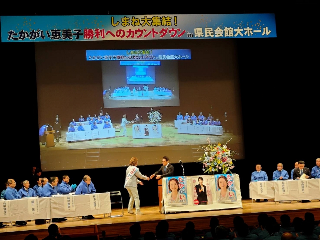 鳥取県島根県合同選挙区の新人女性候補“出川桃子さん”の当選に向け総力を結集し頑張っています。
