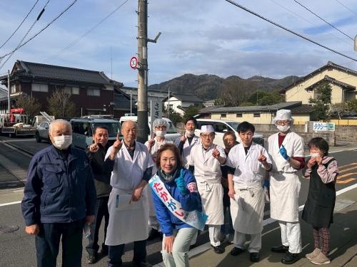 午前は大野・秋鹿・古江・生馬・法吉・城西を回り、出川桃子への熱いご支援を訴えました。