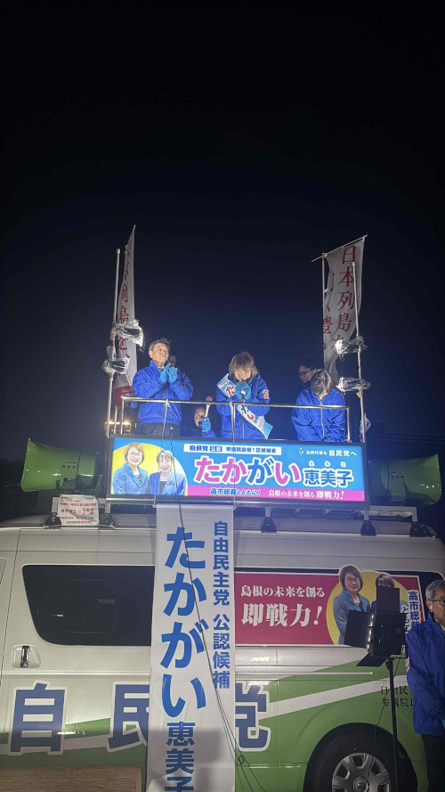 心強いご声援を力に、観光産業の振興、より良い島根を高市総理とともにつくってまいります。